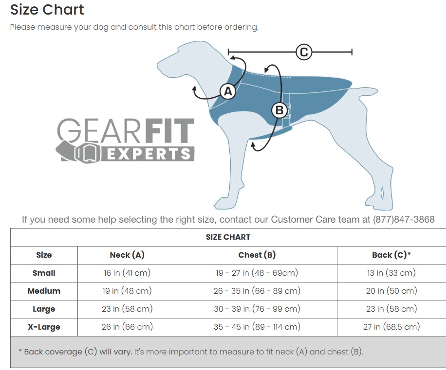Two way zipper to access harness or collar Constructed with lightweight polyester and air mesh inner Two side adjustment points with Nifco quick release buckles Light in color to reflect the sun's heat Uses evaporation to create cooling Centers the cooling action on the dog's core Reflective accents Athletic cut and styling Machine wash gentle or hand wash. Air dry