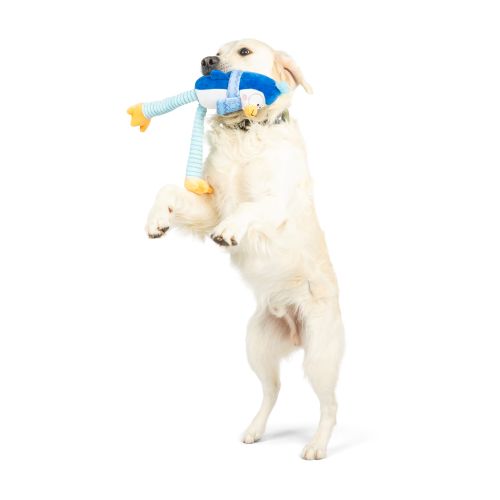 MULTI-SENSORY PLAY: Crunchy bottle squeaker, crinkly rope legs & squeaky feet keep dogs engaged with exciting sounds and textures. FUN FRIENDS: Adorable characters with mixed plush textures for extra cuddle & play appeal. SHAKE & TOSS ACTION: Long, floppy legs mimic prey when shaken or flopped,sparking natural hunting instincts.
