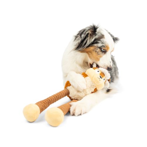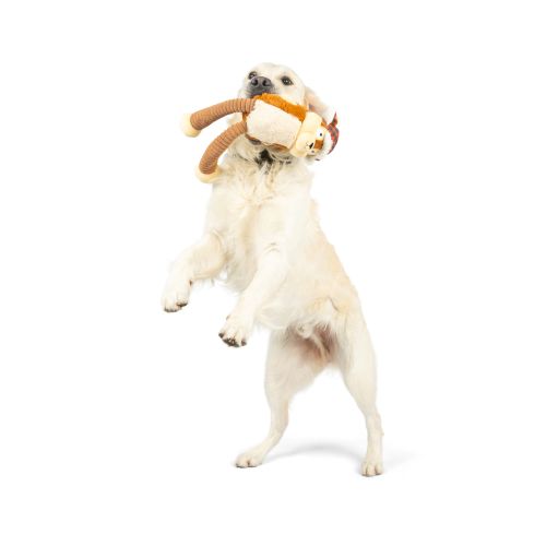 MULTI-SENSORY PLAY: Crunchy bottle squeaker, crinkly rope legs & squeaky feet keep dogs engaged with exciting sounds and textures. FUN FRIENDS: Adorable characters with mixed plush textures for extra cuddle & play appeal. SHAKE & TOSS ACTION: Long, floppy legs mimic prey when shaken or flopped,sparking natural hunting instincts.