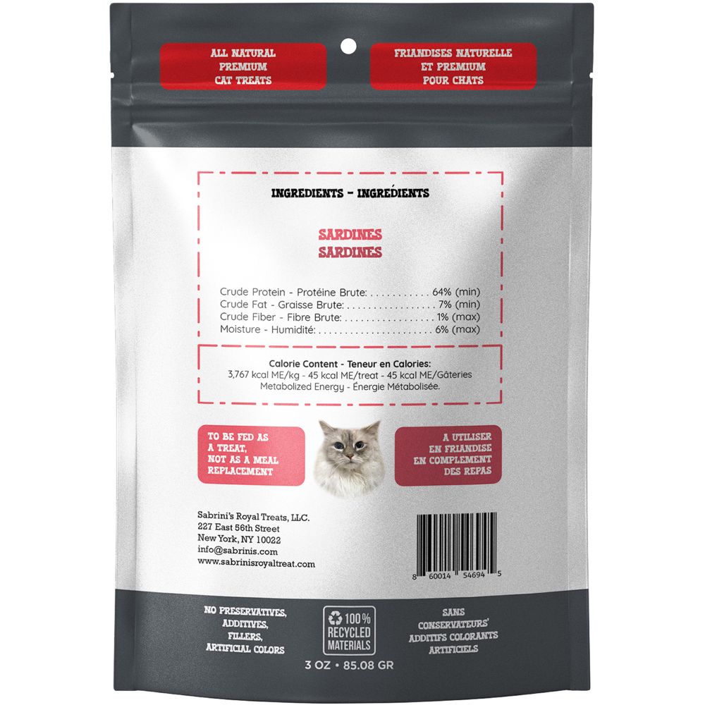 Sometimes our cats don't know the difference between something good for them, like our Sabrini’s 100% natural treats for cats, and things that are...well, not so much. That's why our pets rely on us to help them out! Here at Sabrini's, we use 100% natural and healthy ingredients in our all natural cat treats, as well as making sure our cat treats are properly heated, dried and packaged to ensure quality and safety. Made in Canada, our crispy snacks have 1 or 2 ingredients, depending on the flavor. That's it and that's all. Our premium treats have none of the additives, fillers or preservatives you find in others. They'll surely taste the difference and you'll feel good knowing you're giving your pet the best. You can use Sabrini’s as a snack or for training.