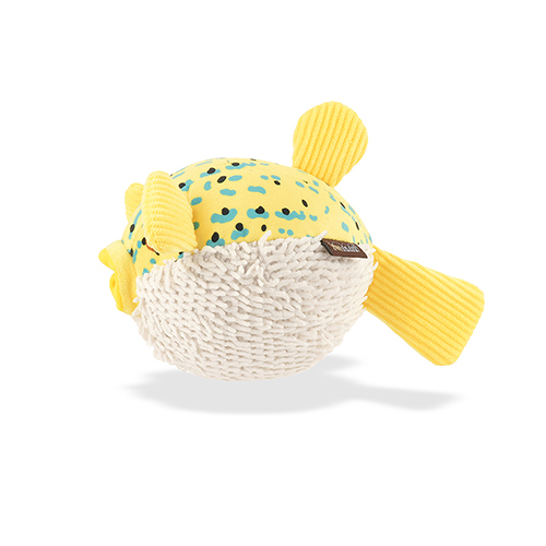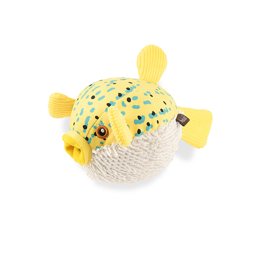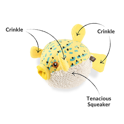 Spiky on the outside and delightfully squishy on the inside, Play’s Puffer Fish is made for pups who love to chomp, toss and cuddle. Hidden inside is a spiked squeaker ball that keeps the fun going even after the plush layer is loved to pieces.