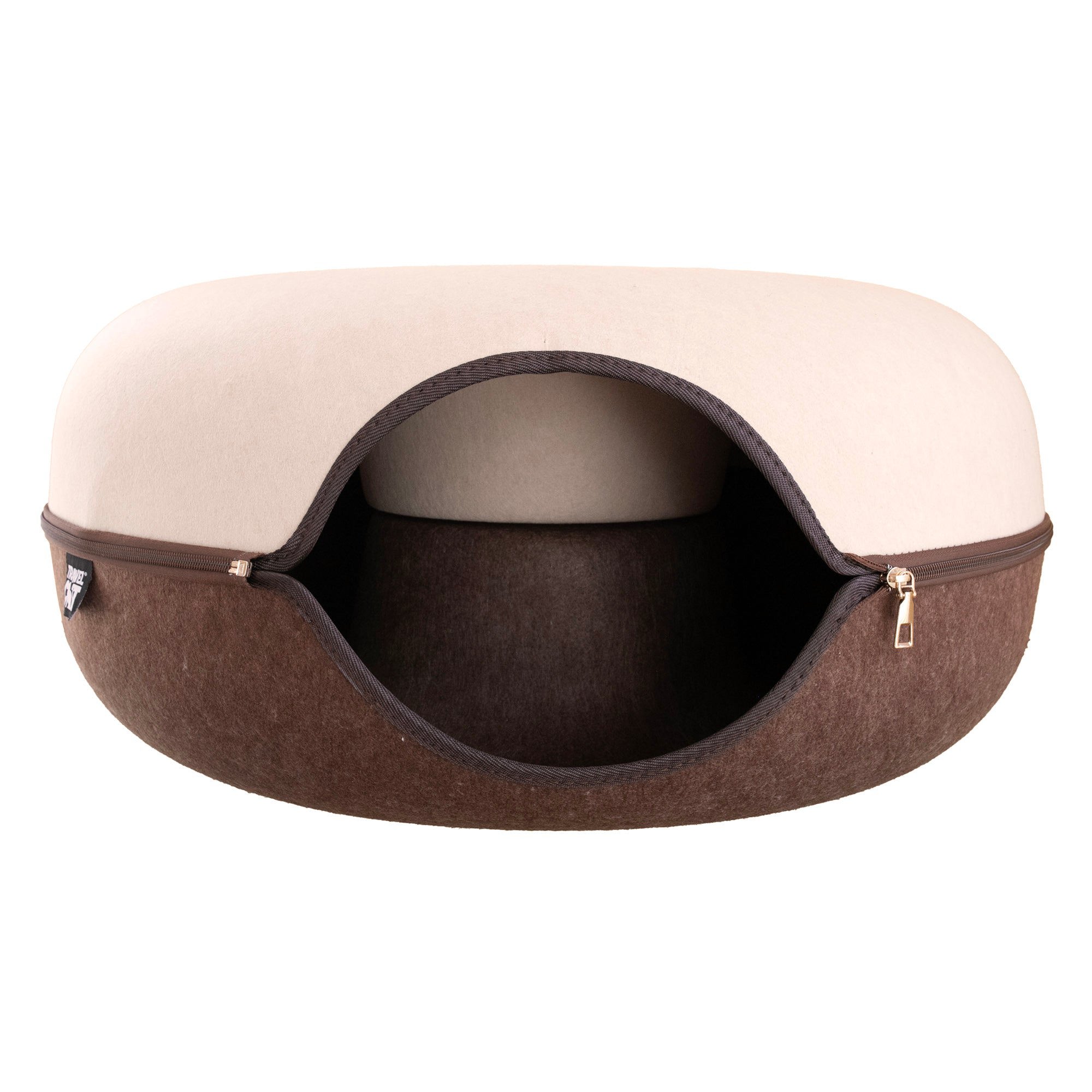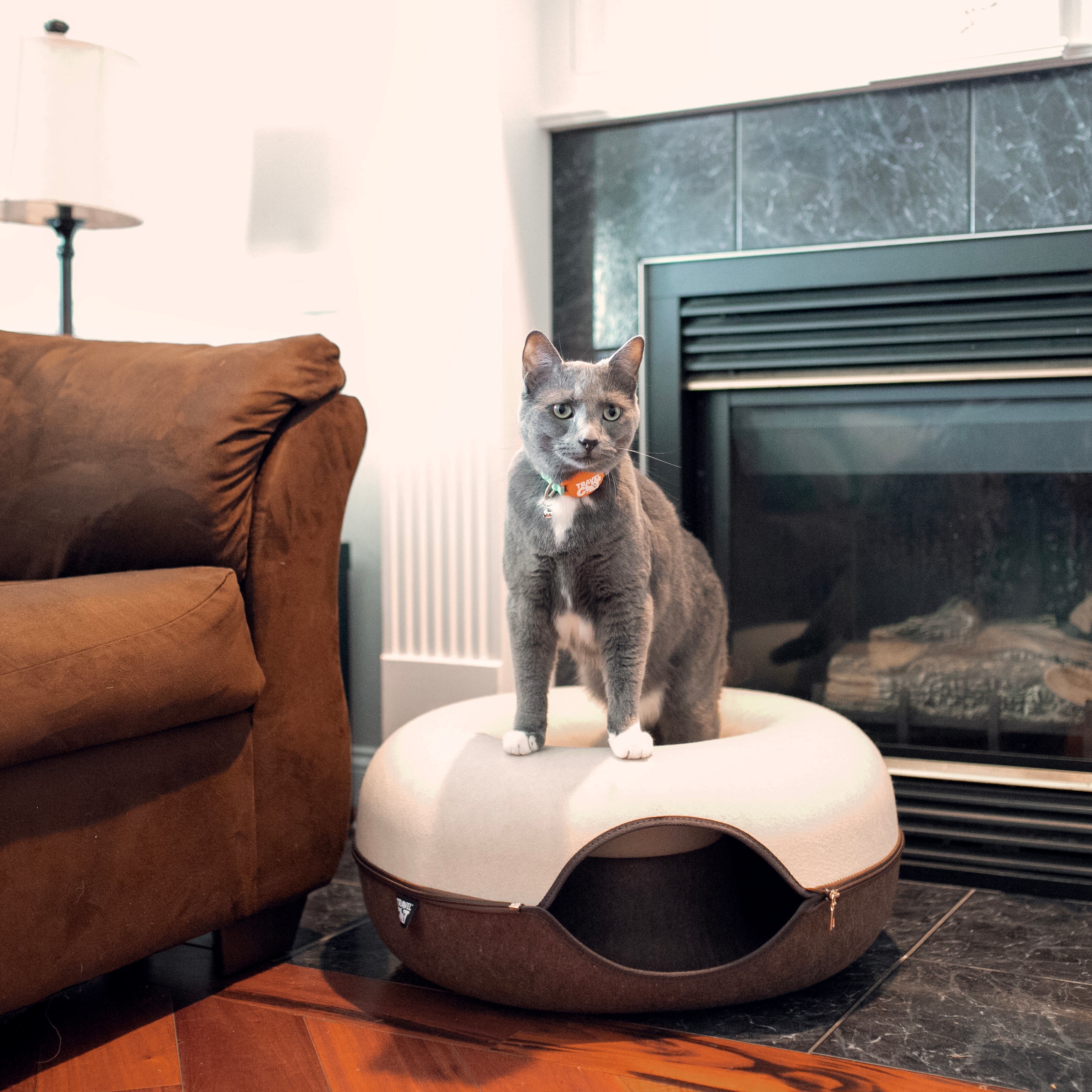 A paws-itively cozy cat cave and bed combo! Whatever mood kitty is in, our Donut! Cat Hideaway Cave will surely satisfy their interest. For some privacy and comfort, they can either get cozy inside or rest up on top. And if they're in the mood to play, you or their fellow feline friends can use it as a fun peek-a-boo toy.