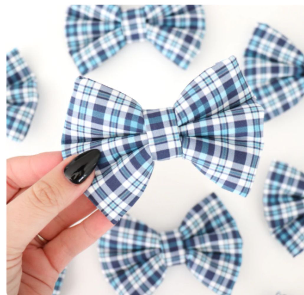 THESE HANDMADE BOW TIES ARE A TOP SELLING PRODUCT FOR OUR SHOP! THESE BOW TIES HAVE AN VELCRO BACKING SO THAT THEY WORK WITH DIFFERENT TYPES OF COLLARS OR HARNESSES. OUR BOW TIES HAVE STABILIZER SEWN IN SO THAT THEY ALWAYS KEEP THEIR BOW TIE SHAPE! THESE BOW TIES ARE PACKAGED FOR RETAIL- READY TO DISPLAY. SIZE SMALL (3 INCH) RETAILS FOR $12 SIZE MEDIUM (4 INCH) RETAILS FOR $14 SIZE LARGE (5 INCH) RETAILS FOR $16
