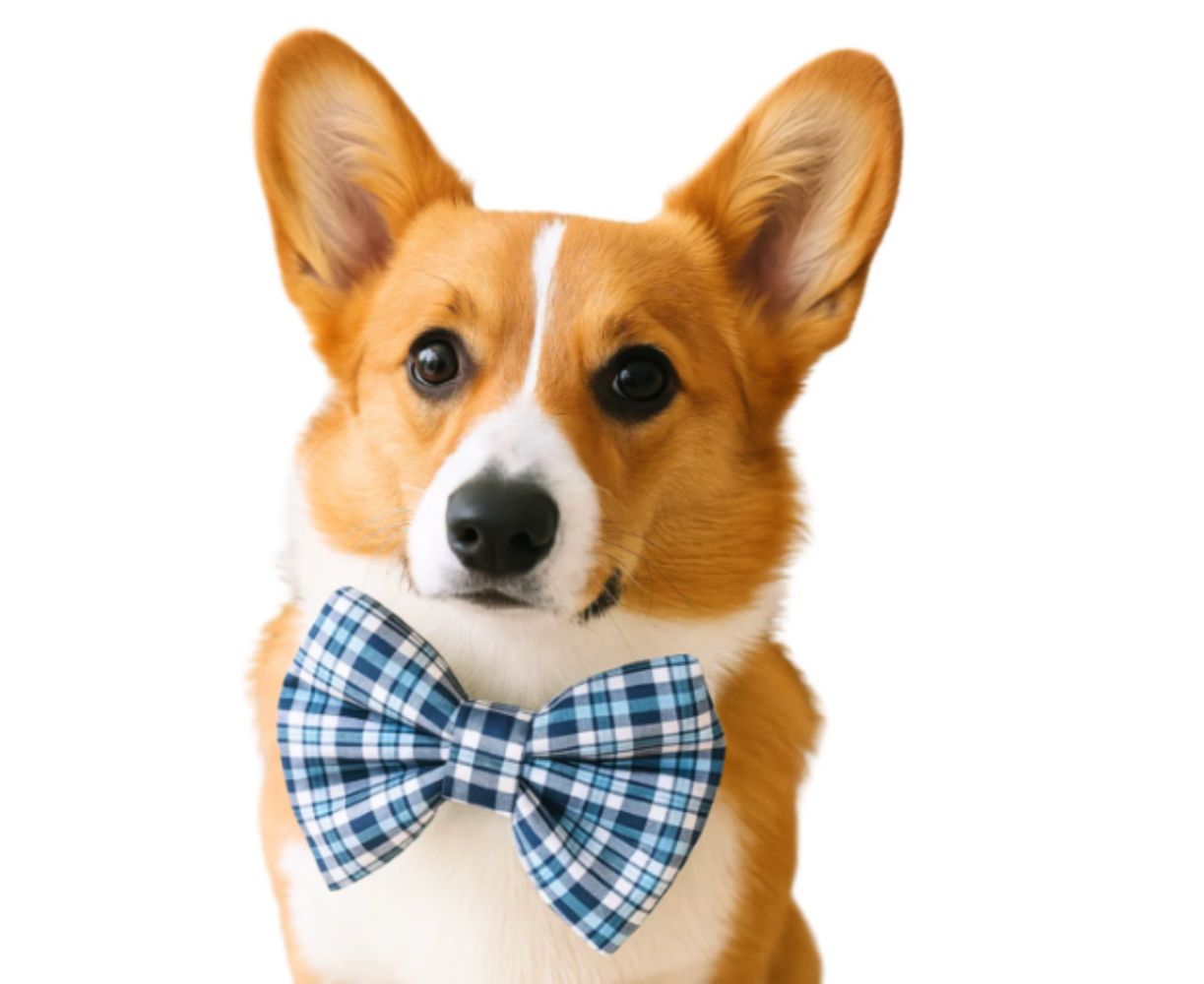NAVY DAPPER PLAID - DAPPER DEXTER DOG BOW TIE