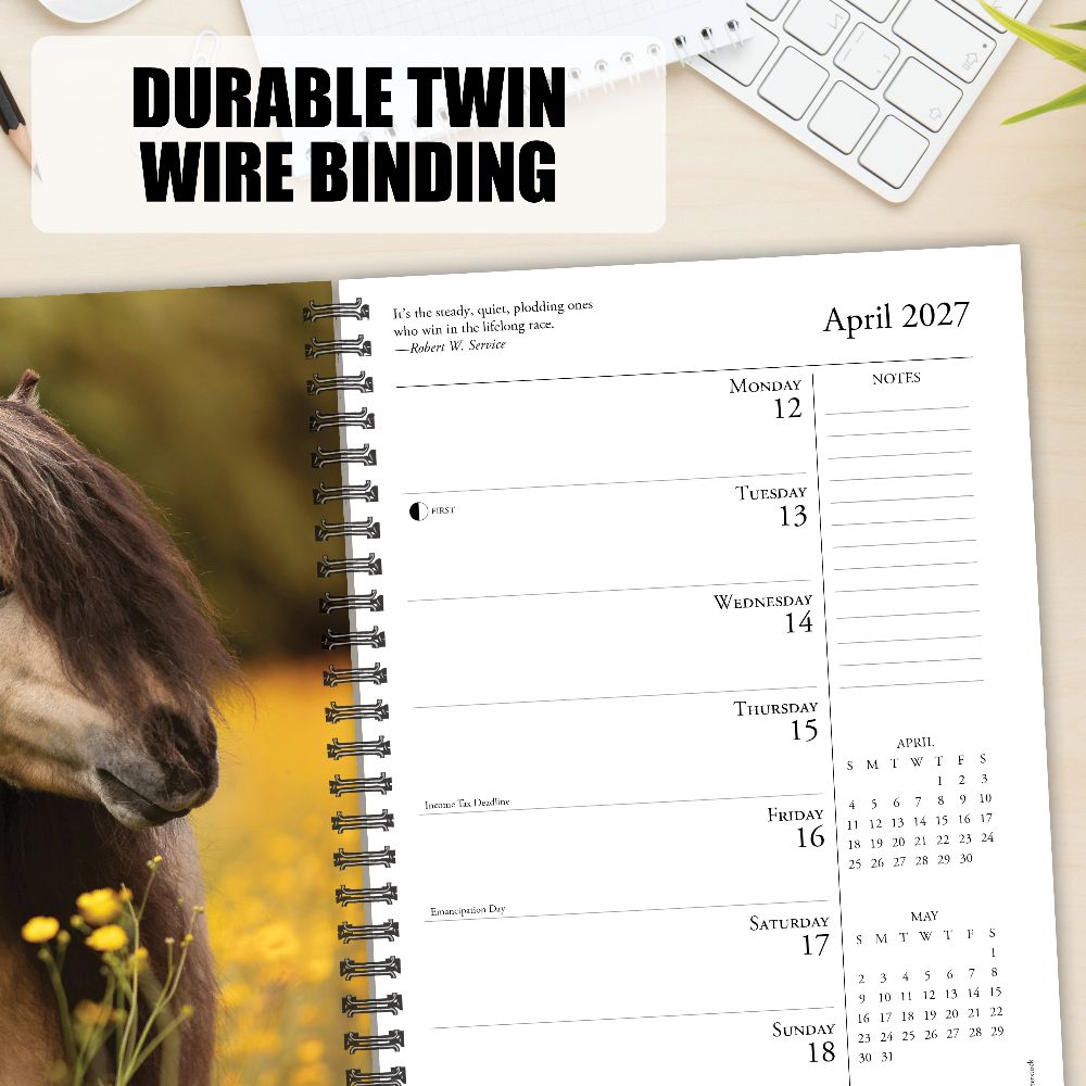 STALLION STORIES – Glean wisdom from our equine companions through delightful images and witty reflections in this spiral-bound softcover weekly planner. PLAN IN STYLE – Stay organized in 2027 with our plastic-free 6.5” x 8.5” engagement calendar. Enjoy crisp, colorful imagery throughout, alongside ample space for your weekly plans, notes, and to-do lists. This planner contains 26 full-color images inside (every other week). Its compact size fits easily into bags and purses, ensuring you're always organized on the go. PICTURE-PERFECT QUALITY – Enjoy crisp, colorful photos alongside ample space for your weekly plans, notes, and to-do lists. Plus, it's printed with soy-based inks on high quality paper for smooth writing. SCHEDULE WITH EASE – Be inspired, take notes, remember dates, track appointments, and manage family activities with ease. Our weekly planners offer a practical layout that lets you plan your weeks with efficiency and inspiration.