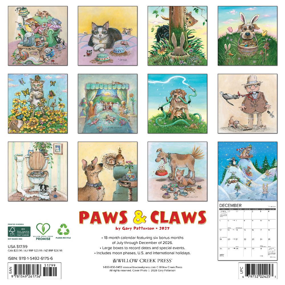 PAWSOME LAUGHS – The 2027 Paws & Claws Wall Calendar by Gary Patterson delivers a year full of laughter and charm with whimsical illustrations of cats...