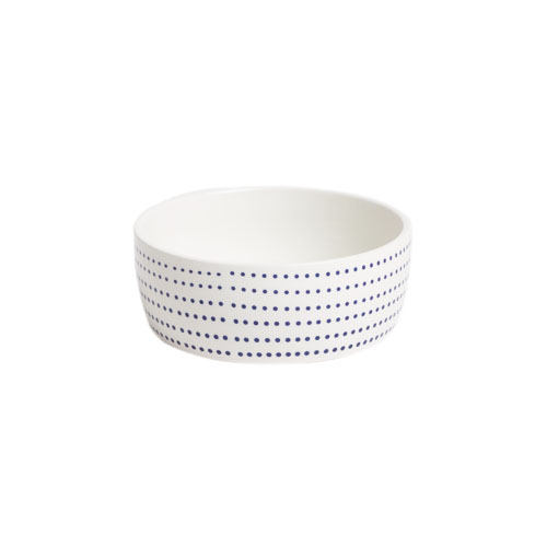 Upgrade your cat’s feeding routine with this premium ceramic cat bowl for food and water, designed for both everyday function and modern style. Made from durable, non-toxic, lead-free ceramic, this plastic-free cat food bowl is a safe and hygienic choice for serving dry food, wet food, treats, or water. The shallow, wide design helps reduce whisker fatigue, making it a comfortable whisker-friendly cat bowl for kittens and adult cats alike. Its heavyweight, non-tip construction helps prevent sliding and spills during mealtime, while the smooth glazed interior resists stains and odors for easier cleaning. Finished in a modern white design with a stylish blue dotted pattern, this decorative ceramic cat bowl complements contemporary home décor. Hand wash recommended to maintain the bowl’s quality and long-lasting finish. Bowl Size: 5.25" x 5.25" x 2". Holds up to 1.3 Cups.