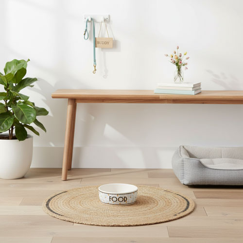 Upgrade your pet’s mealtime with this modern ceramic dog food bowl featuring a stylish honeycomb pattern and bold “FOOD” lettering. Designed for small and medium dogs, this durable stoneware pet bowl is perfect for serving dry kibble, wet food, or fresh water. The naturally weighted ceramic construction helps reduce sliding and tipping, making it ideal for everyday indoor feeding. A premium non-plastic alternative, this decorative dog bowl blends seamlessly with farmhouse, contemporary, or minimalist home décor while providing long-lasting durability. The smooth glazed interior allows for easy cleaning, and hand washing is recommended to preserve the finish and design. A functional and stylish addition to any dog feeding station. Bowl Size: 6.3” L x 6.3” W x 2” H, Holds 2 cups (500 ml / 16 oz)