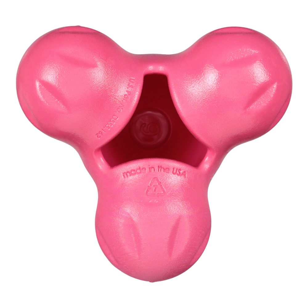 Our toughest eco-friendly treat toy, Tux has stood the test of time and up to some fearsome fangs. Nut butters, biscuits, and meaty bits all get gnawed free whenever a dog is near. Creating a Tux-cicle is a great way to keep dogs cool in hot months. Simply fill with broth, gravy, or wet food and freeze. Tux is also fun to toss, fetch, and chew even after the treats are gone.
