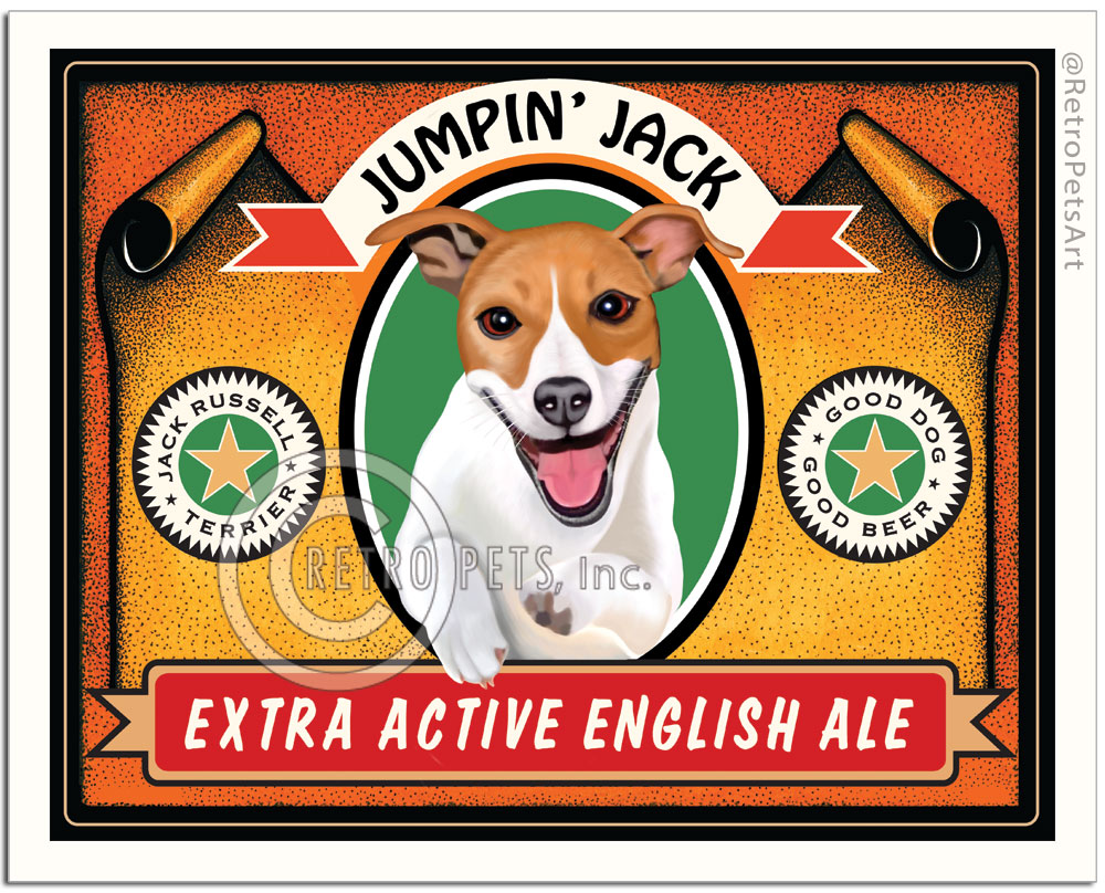 This little Jack is full of exuberance! The words in the medallions read, Jack Russell Terrier on one side, and Good Dog, Good Beer on the other. 8x10...