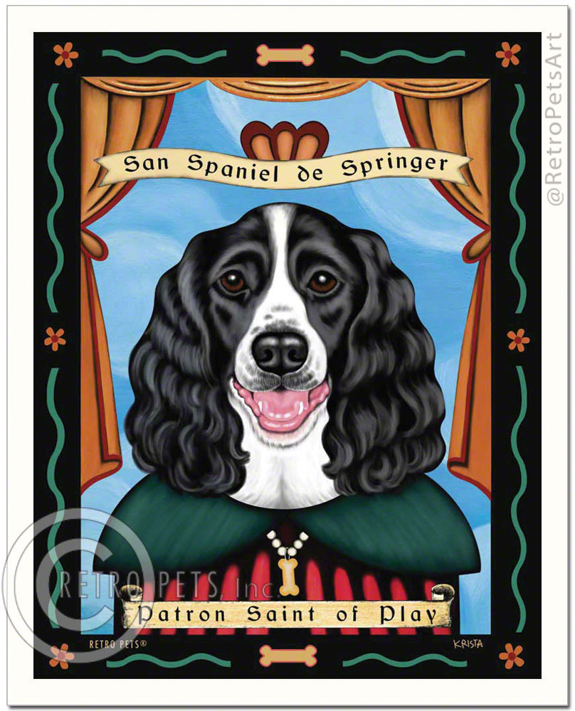 San Spaniel de Springer (Springer Spaniel) Patron Saint of Play - Black & White