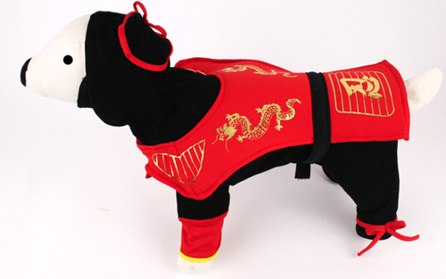 One of our newest creations and one of our cuties costumes. Our Dragon Ninja has gold metallic screen printing in the same designs of the ancient Japanese Ninja. It is striking against the red body cover. This Ninja will infiltrate the party and draw attention to your little pup. 100% cotton four legged body suit fits to form. Face mask is removable and is hand washable.