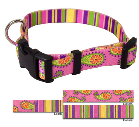 Pink Paisley / Pink Stripes Mix & Match Collection. If you're going to mix, make sure you match. Leads are patterned on both side to coordinate the prints on each side of the collar. Please select the outside (showing) pattern of the collar / you want. Leads / Couplers are double-sided and reversable so it does not matter which pattern you choose.