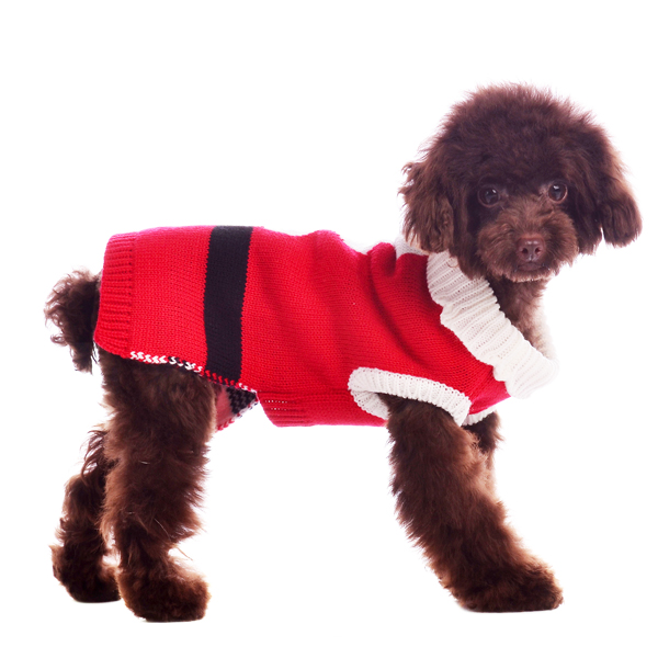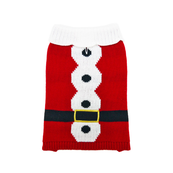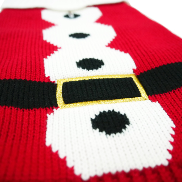 Pullover sweater with graphical Santa buttons and belt. Convenient leash hole located around collar. This popular sweater is now available in big dog sizes!