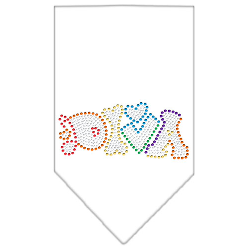Small is a 14" x 14" square that is easily folded in half to create the triangle look needed. Roll the bandana until the desired length down the back has been achieved, then tie around the dog's neck.